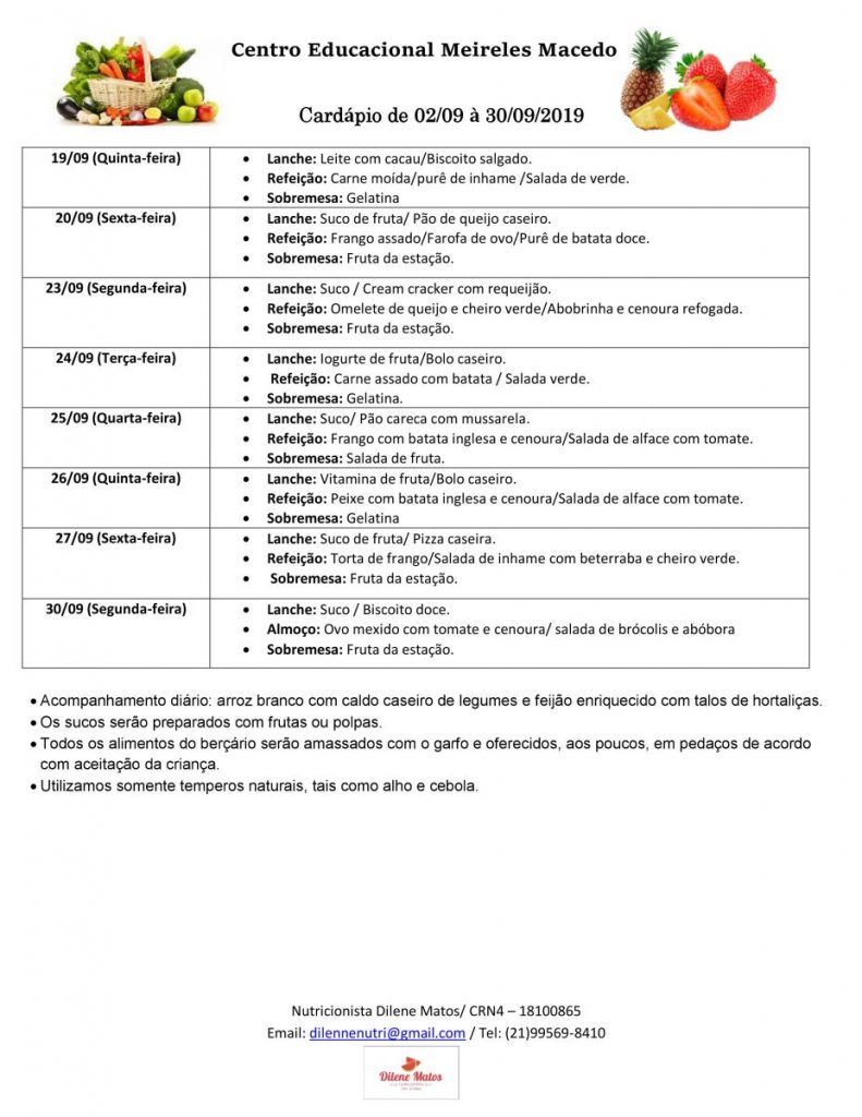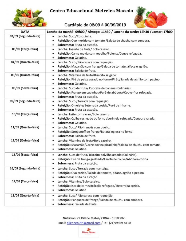 Cardápio de 02/09 à 30/09/2019 – INTEGRAL