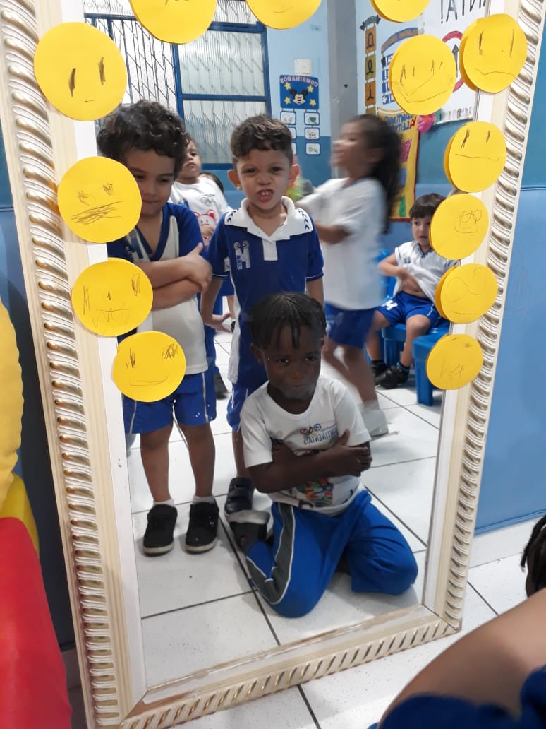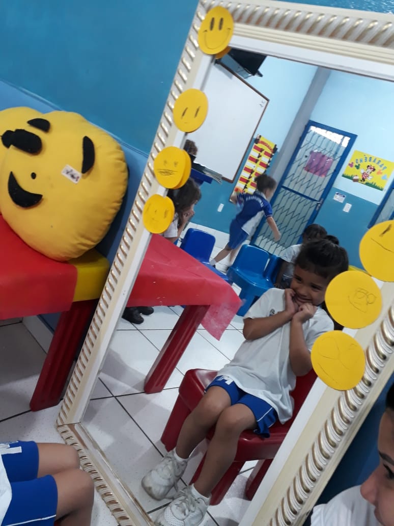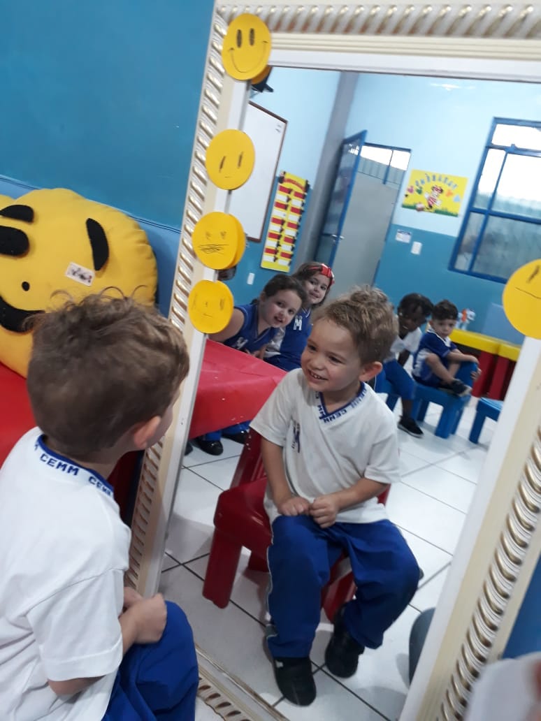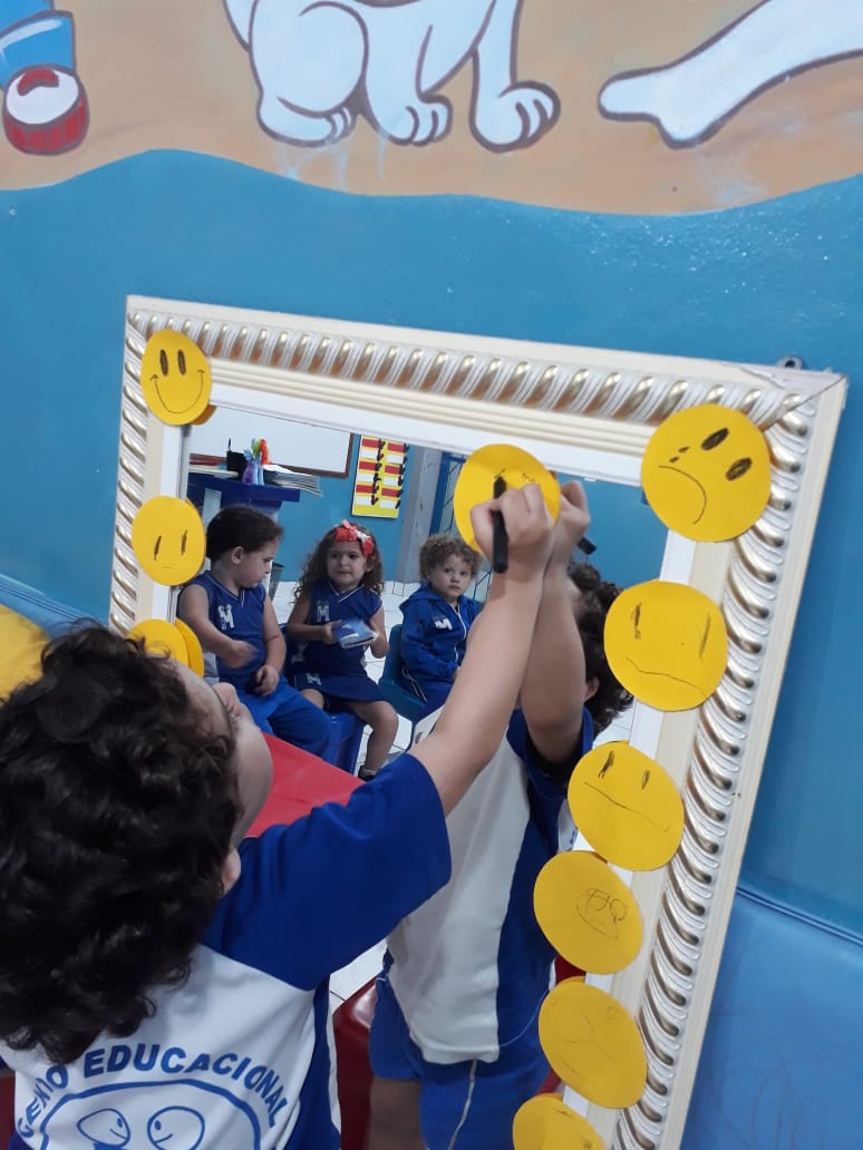 Os alunos do Maternal II 1° turno, tiveram uma atividade bem divertida, pois puderam expor seus sentimentos no espelho.