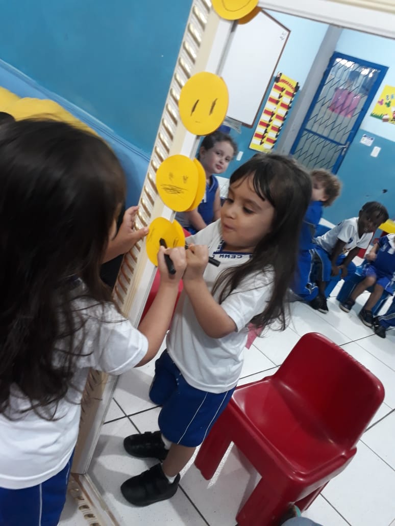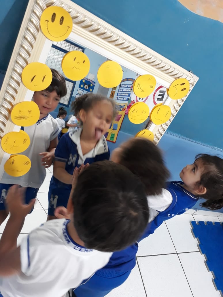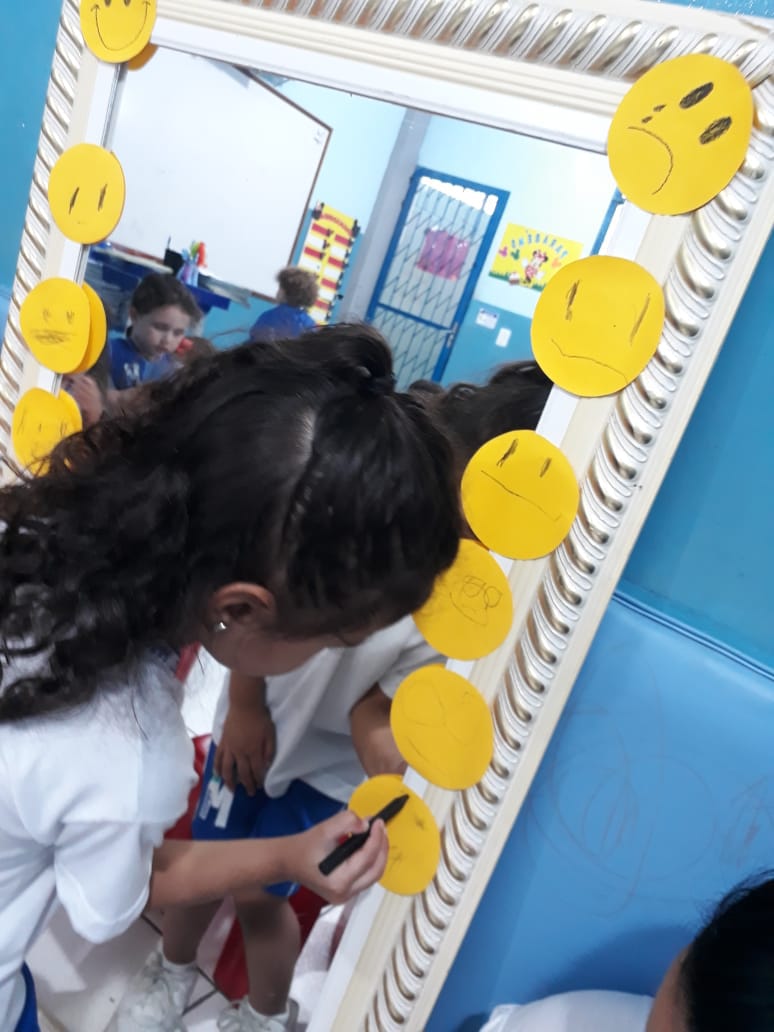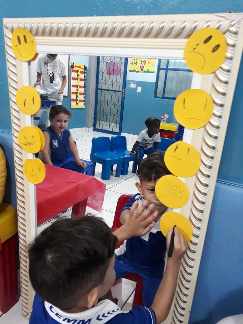 Os alunos do Maternal II 1° turno, tiveram uma atividade bem divertida, pois puderam expor seus sentimentos no espelho.